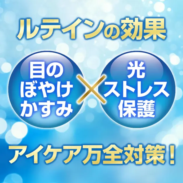 そこで配合されているのがルテイン。光ストレスをブロックし、コントラスト感度を改善する機能が報告されています。天然のサングラスとも呼ばれ、常にブルーライトを浴びる現代人の目には必須の成分です。