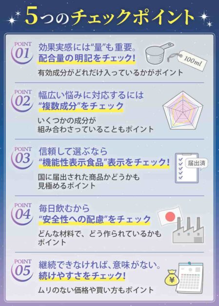 その前に、睡眠サプリ選びで失敗しないための5つのポイントを、わかりやすく解説します!