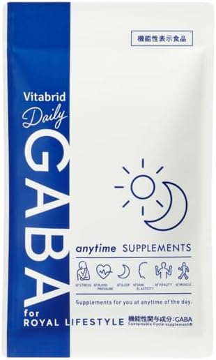 デイリーGABAは、睡眠の質を上げる、ストレスを和らげる、朝すっきり目覚める、元気が出る、血圧を下げる、お肌の弾力を保つ、筋肉量を保つという7つの働きが報告されている、機能性表示食品です。