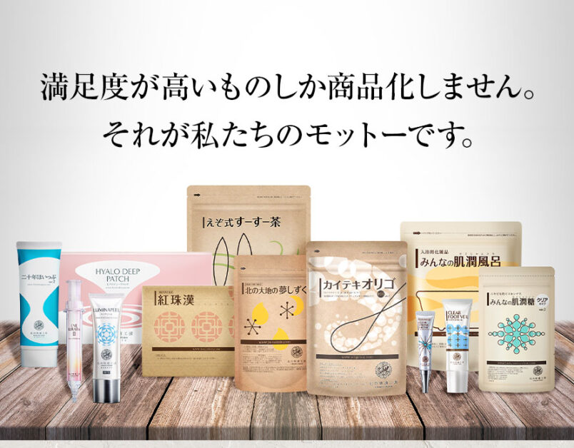 しかし商品開発の過程で、世の中で売られている健康食品の多くは品質が悪く、お客様のご満足につながっていないことを知りました。そこで「ご満足クオリティのモノづくり」を掲げ、納得のいくまでモニター調査を繰り返し、自信を持って販売できる商品が出来た時にだけ発売するという姿勢を貫いてきました。