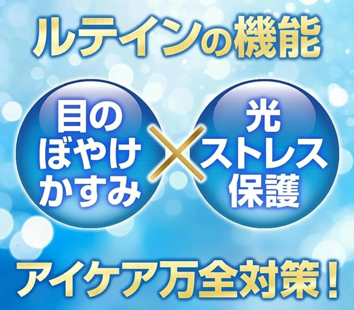 そこで配合されているのがルテイン。光ストレスをブロックし、コントラスト感度を改善する機能が報告されています。天然のサングラスとも呼ばれ、常にブルーライトを浴びる現代人の目には必須の成分です。