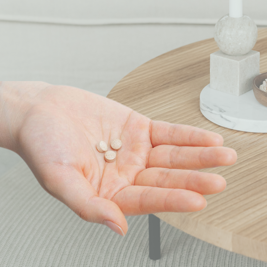 小粒タブレット設計で飲みやすく、就寝前に3粒を目安に水またはぬるま湯と一緒にお召し上がりいただくだけ。オイルならではのベタつきがなく、毎日続けやすい設計にこだわりました。