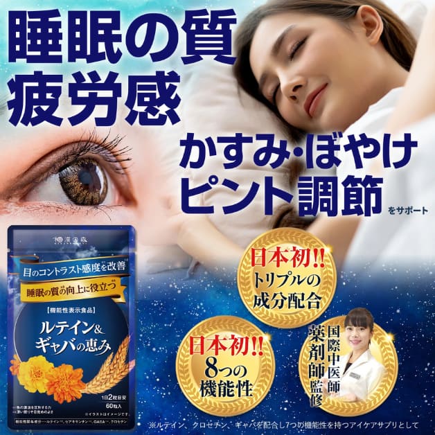 目のぼやけやかすみ、スマホやパソコンの使いすぎによる目の疲れ。そして、ぐっすり眠れない、朝起きても疲れが取れない。現代人が抱える、この2つの悩みに同時にアプローチできるサプリメントがあります。