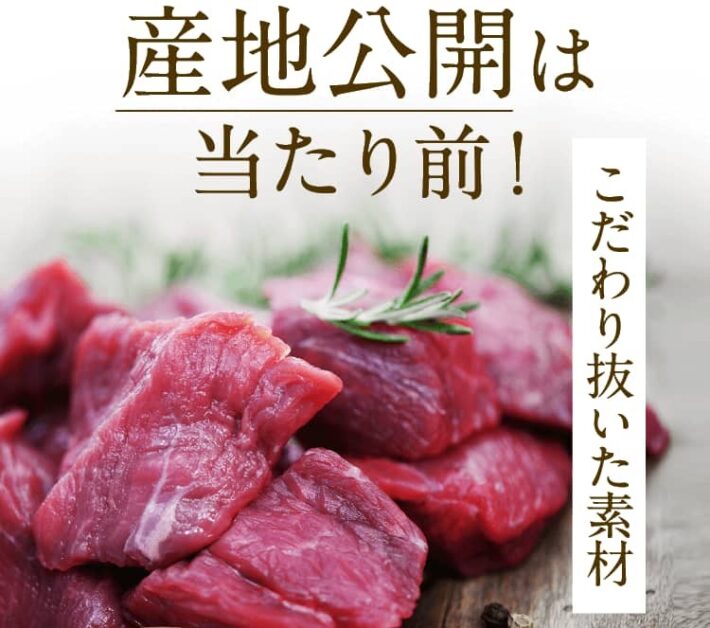 | 食いつき | 生肉100%、オイルコーティング無し、鰹節の香りで圧倒的な食いつき | 香料・オイル無添加でも自然な香りと旨みで食べやすい | 馬肉・鶏肉・まぐろ・緑イ貝を主原料に使用 動物性たんぱく質が豊富で、においが控えめなのにしっかり食いつく | 国産野菜 素材本来の香りと旨みで偏食の子にも◎ | チキンや魚を主原料とした高タンパクレシピ 素材由来の自然な香りを大切にしており、人工香料不使用 |