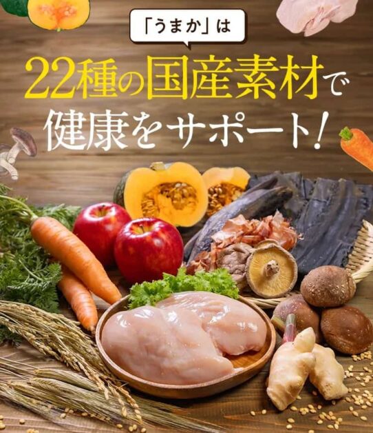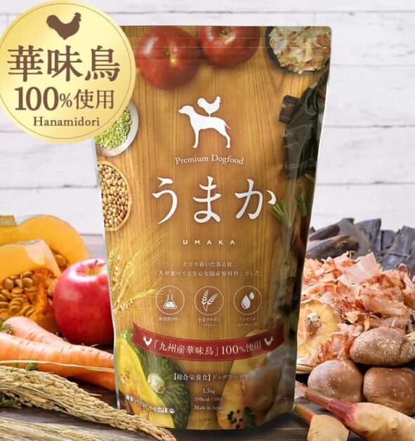 国産の銘柄鶏「華味鳥」を贅沢に使用したドッグフード、うまか。