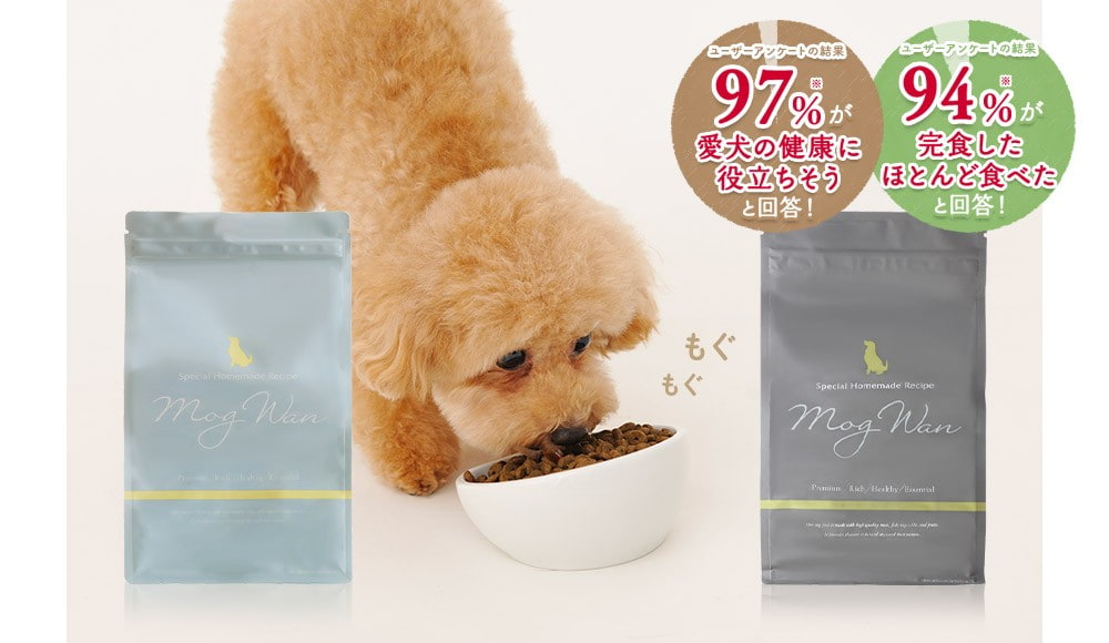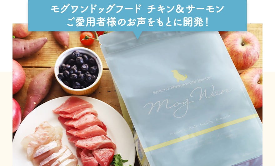 モグワンドッグフードは、「愛犬に毎日安心して与えられる食事とは何か」を考え、手作り食レシピの発想から生まれたドッグフードです。原材料の選定から製造環境まで、人の食事と同じ目線で考えることを大切にしています。