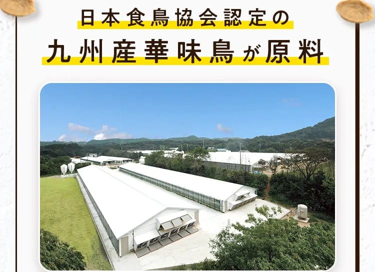 主原料には、九州産の銘柄鶏「華味鳥(はなみどり)」を100%使用。