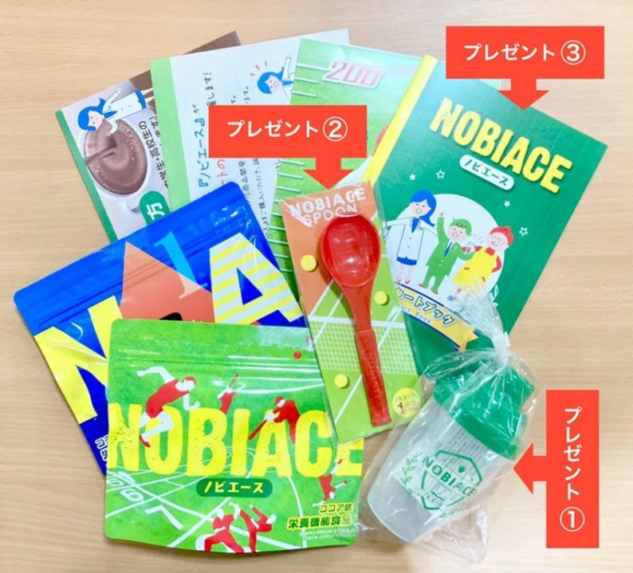 さらに今なら、シェイカー、計量スプーン、のびのび成長読本の3点をプレゼント。