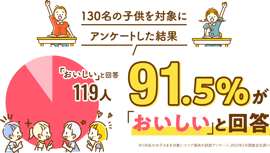 ココア味で飲みやすく、専用シェイカー付きで溶けやすいので子供が自分で作れるところがいいです。