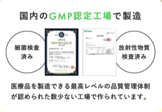 品質管理も徹底されており、医薬品を製造できる国内トップレベルのGMP認定工場で製造。