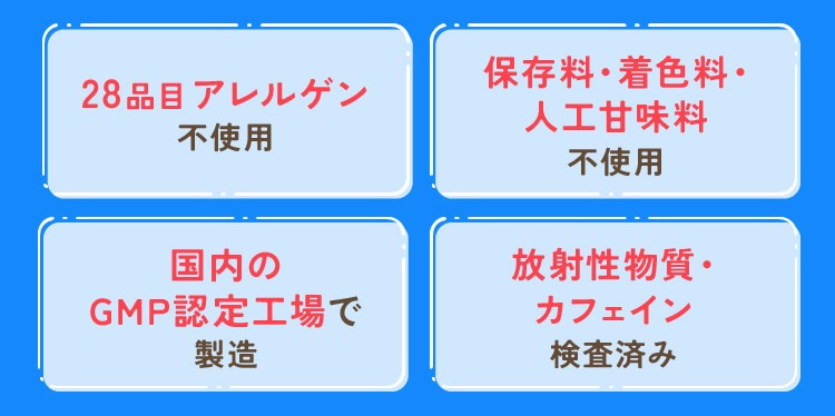 品質管理も徹底されており、医薬品を製造できる国内トップレベルのGMP認定工場で製造