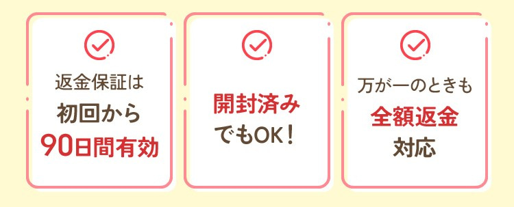 さらに、90日間の全額返金保証も付いています。万が一合わない場合や、口に合うか不安な方でも、じっくり試せる安心の仕組みです。