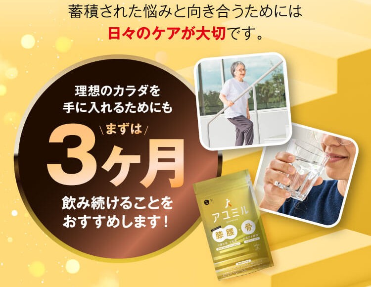 アユミルは、腰・ひざ・肩・骨といった部位を意識した設計の機能性表示食品。