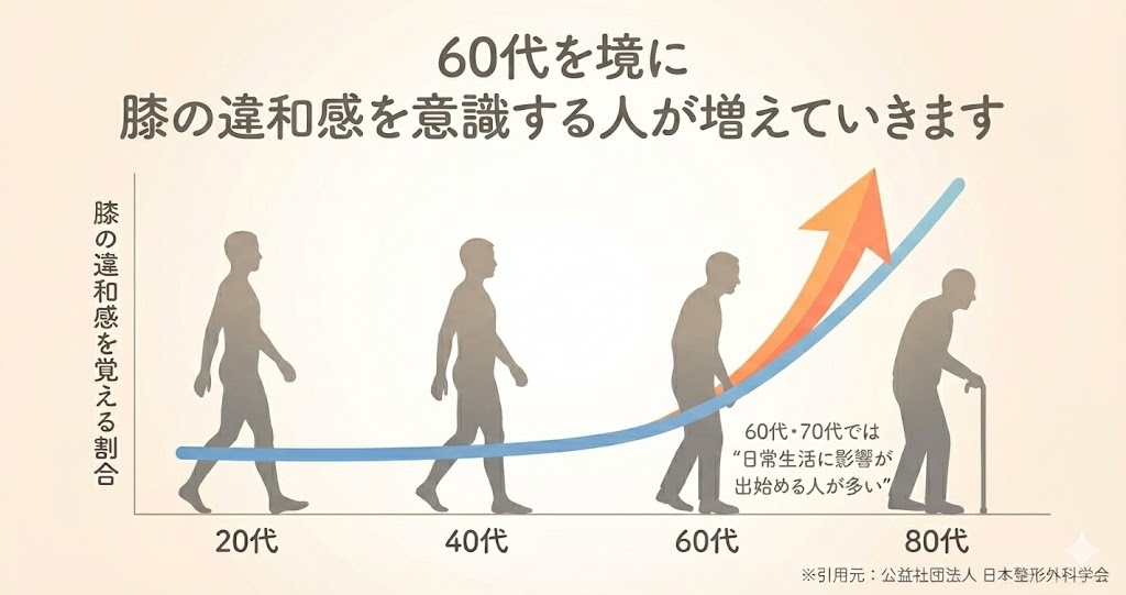 膝の違和感は、年齢を重ねると誰もが少しずつ感じるようになります。