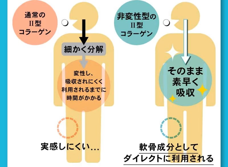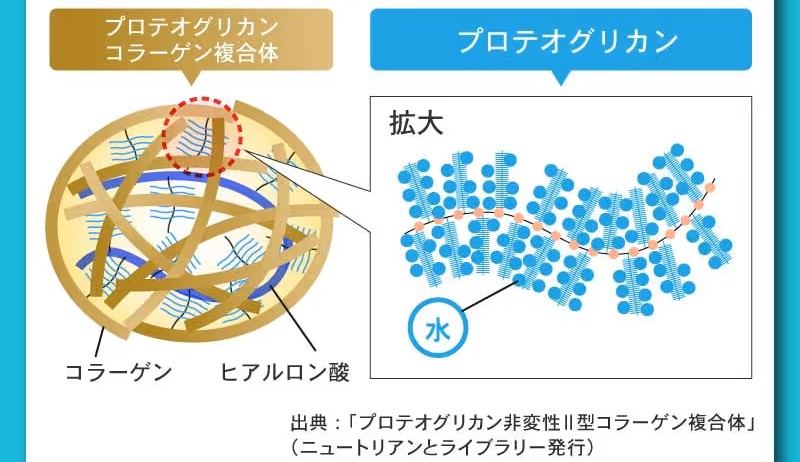 配合されているのは、サケ鼻軟骨由来のプロテオグリカンと、非変性Ⅱ型コラーゲン。