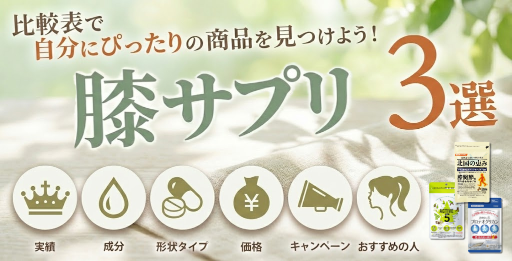 だからこそ、長く続けやすい価格・飲みやすさを重視して選ぶのがポイントです。主要成分や価格・安全性をもとに、続けやすい膝サプリをまとめました。