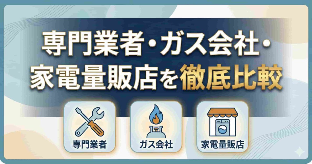 「専門会社」「ガス会社」「家電量販店」のそれぞれの特徴を紹介します。